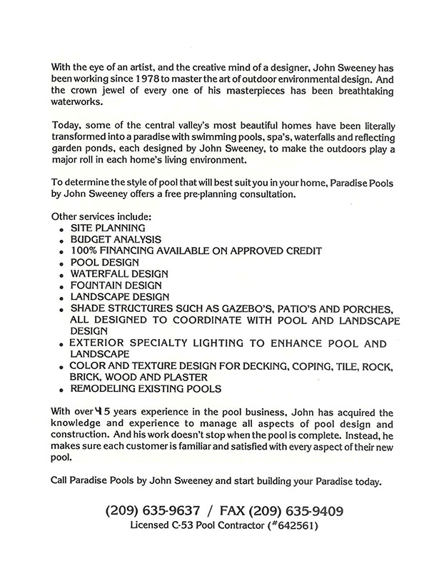 Visalia Pool Builder Paradise Pools™ by John Sweeney.